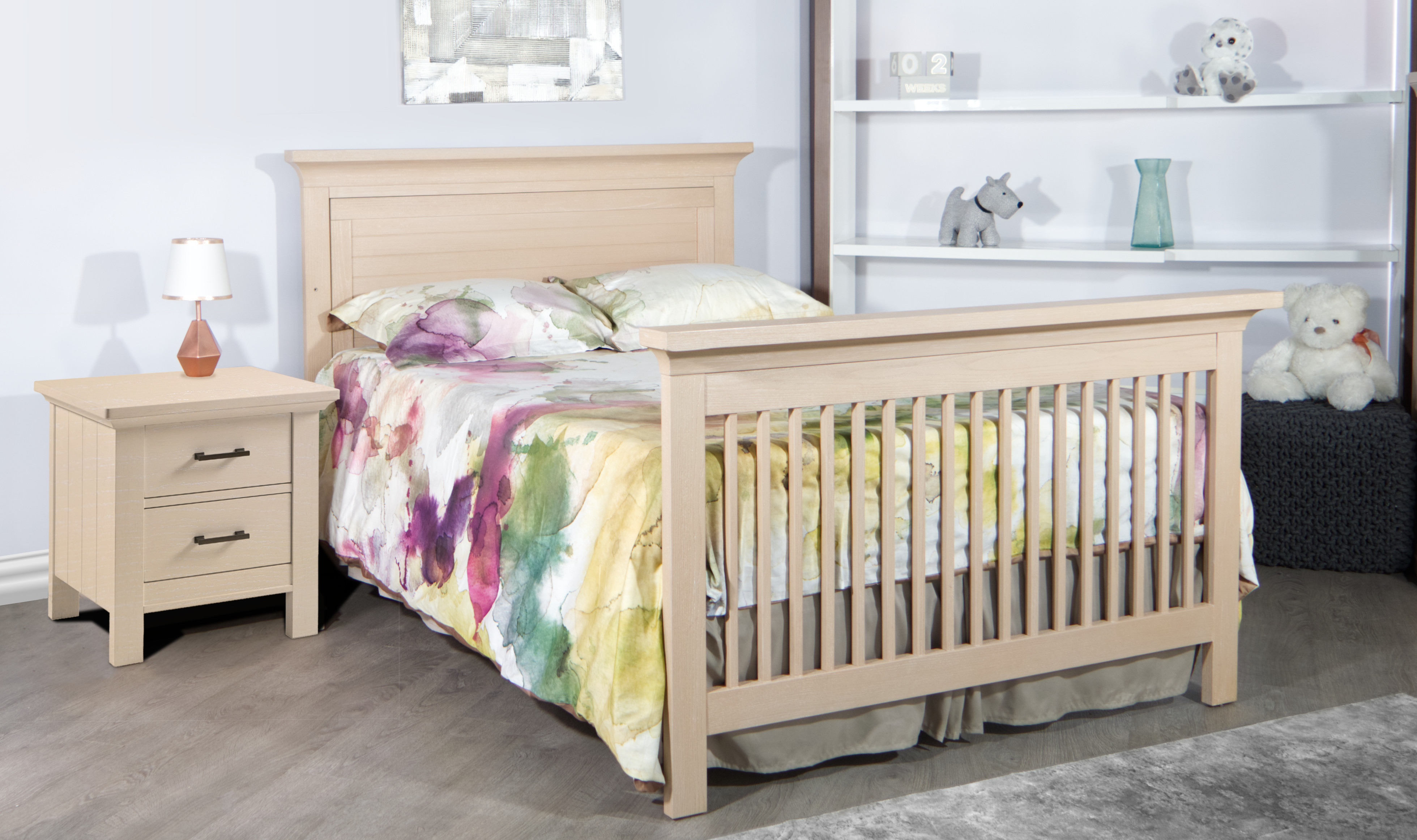 Varese is a beautiful little town located half way between Lake Como and Lake Maggiore, at the foothills of the Alps. It was our inspiration for the collection that features the magnificent 2755 crib, which has a flat-top full panel headboard and is GreenGuard Gold certified. It is a 4 in 1 crib. Our furniture is built from the best solid woods and veneers, for superior safety. All finishes are non-toxic. Check out the brand-new finish: Sandstone! It is now in stock!!